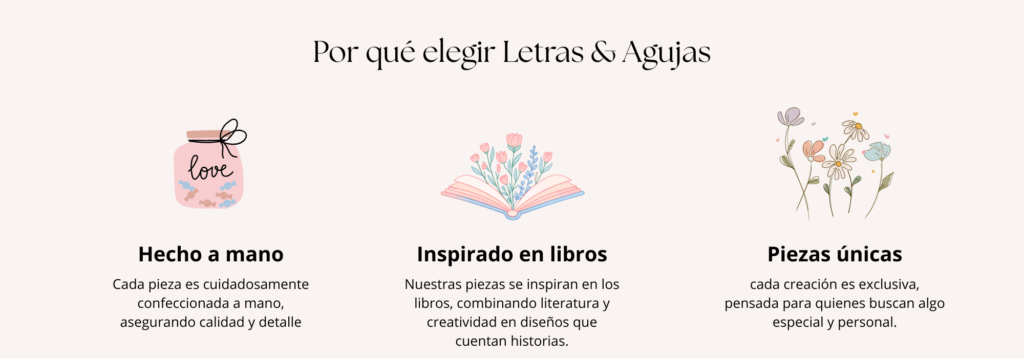 Bienvenidos a Letras y Agujas, un lugar donde la pasión por los libros y la artesania se encuentran. Nuestra tienda nació del amor por la lectura y la necesidad de proteger nuestros libros. Cada funda y producto literario que ofrecemos está hecho a mano con dedicación y cuidado, asegurando así que cada pieza sea única y especial.